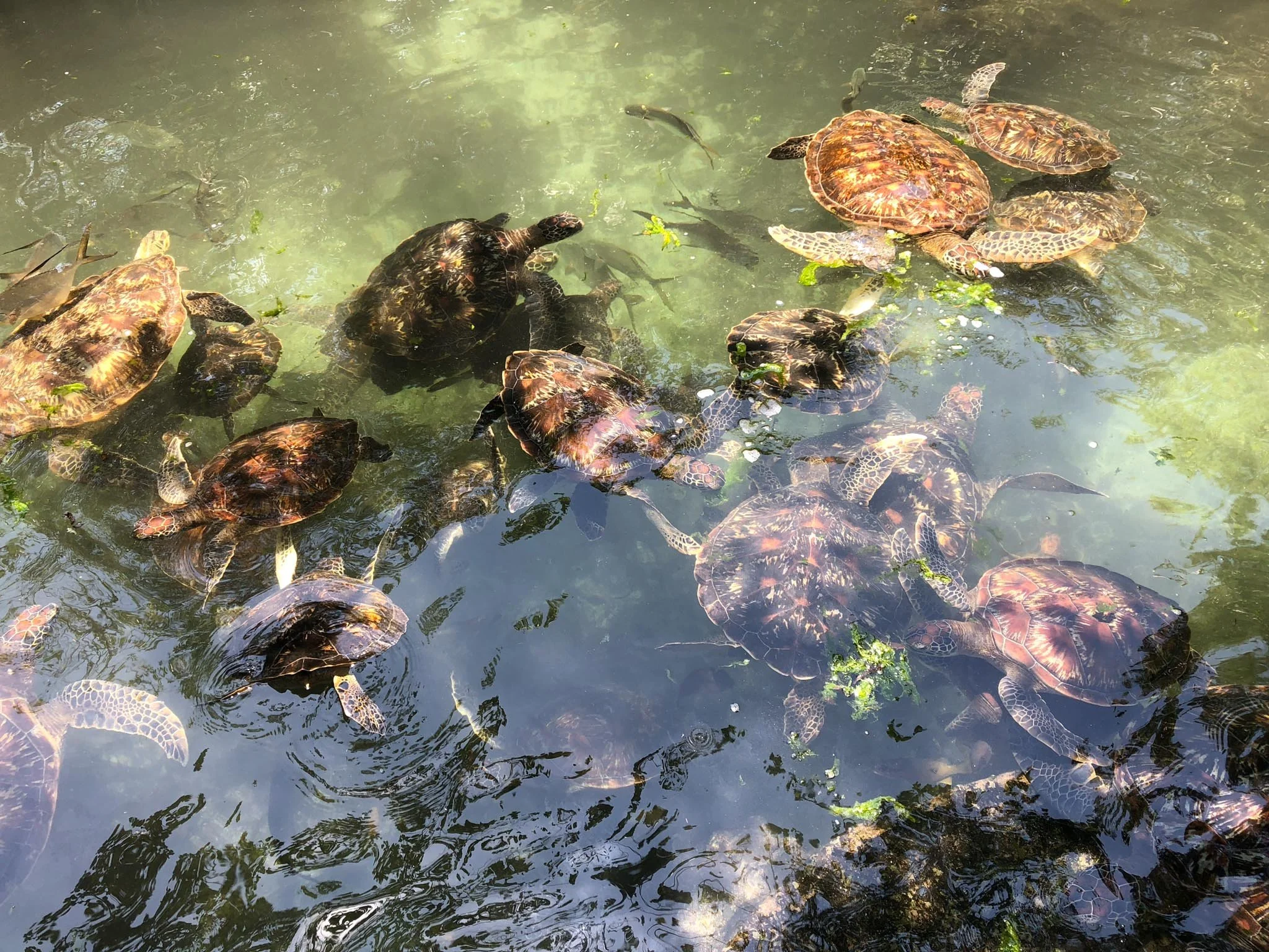 Začnou být nervózní, chovají se k sobě agresivně z frustrace a často si navzájem do krve okusují ploutve, protože nemají kam uniknout. Nezřídka pak útočí i na příchozí turisty. Kousnutí od želvy je zde naprosto běžné. A ne, fakt si turistu nespletla s jídlem.